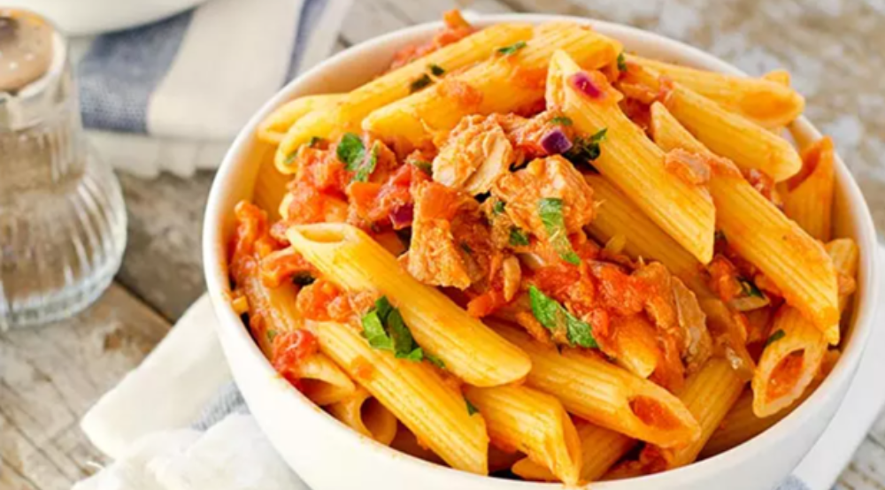 Tangy pasta made with tomato sauce and tuna, this can be a great meal to have on a Sunday....